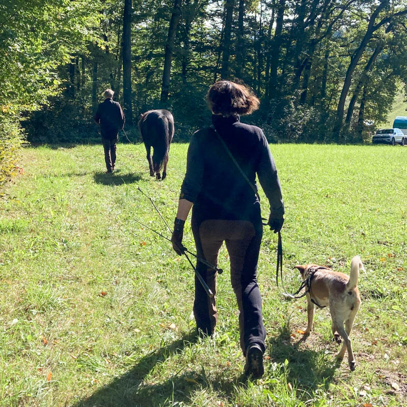 Nach zwei Workshop-Einheiten ohne Pferd geht es nun für die Zweierteams in die Umsetzung der Lerninhalte zur friedvollen, achtsamen Kommunikation mit und vertrauensvollen Beziehungsgestaltung zum Pferd.